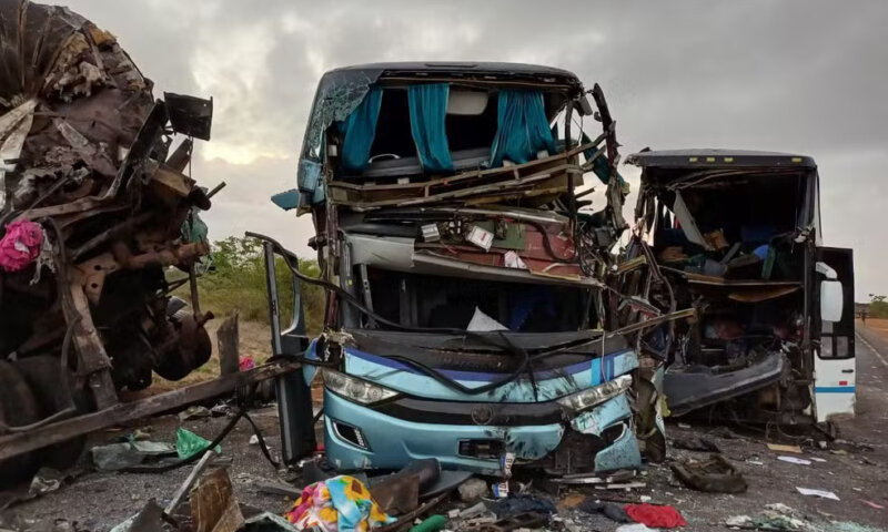 Uma batida entre dois ônibus e uma carreta deixou cinco pessoas mortas na noite de quarta-feira (4) na BR-110, na cidade de Olindina, a 218 km de Salvador. De acordo com o 19ª Batalhão de Bombeiros Militares de Alagoinhas, cidade a 96 km de Olindina, mais de 20 pessoas ficaram feridas e precisaram ser atendidas em unidades de saúde da região.