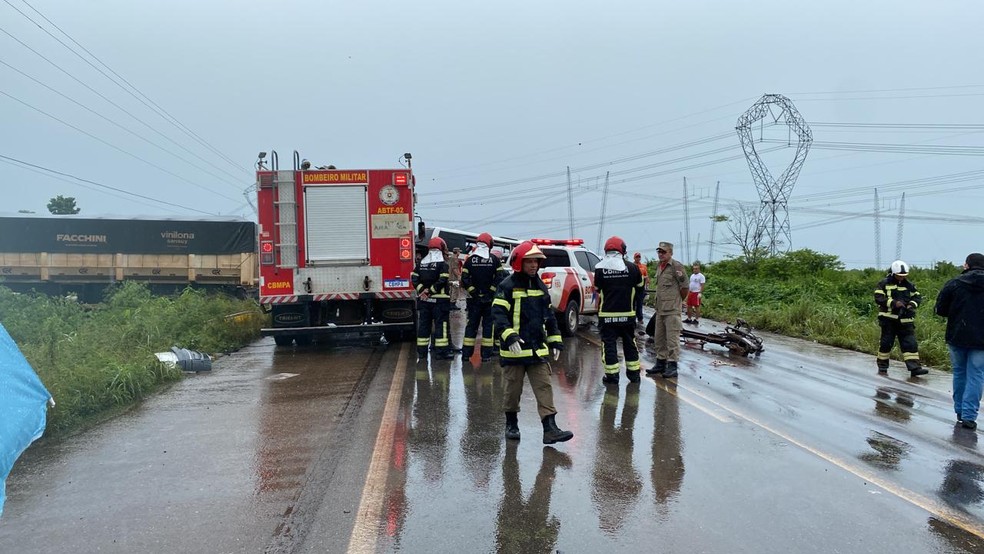Acidente entre micro-ônibus e caminhão deixou mortos no Pará — Foto: Jhenyffer Florêncio/TV Liberal