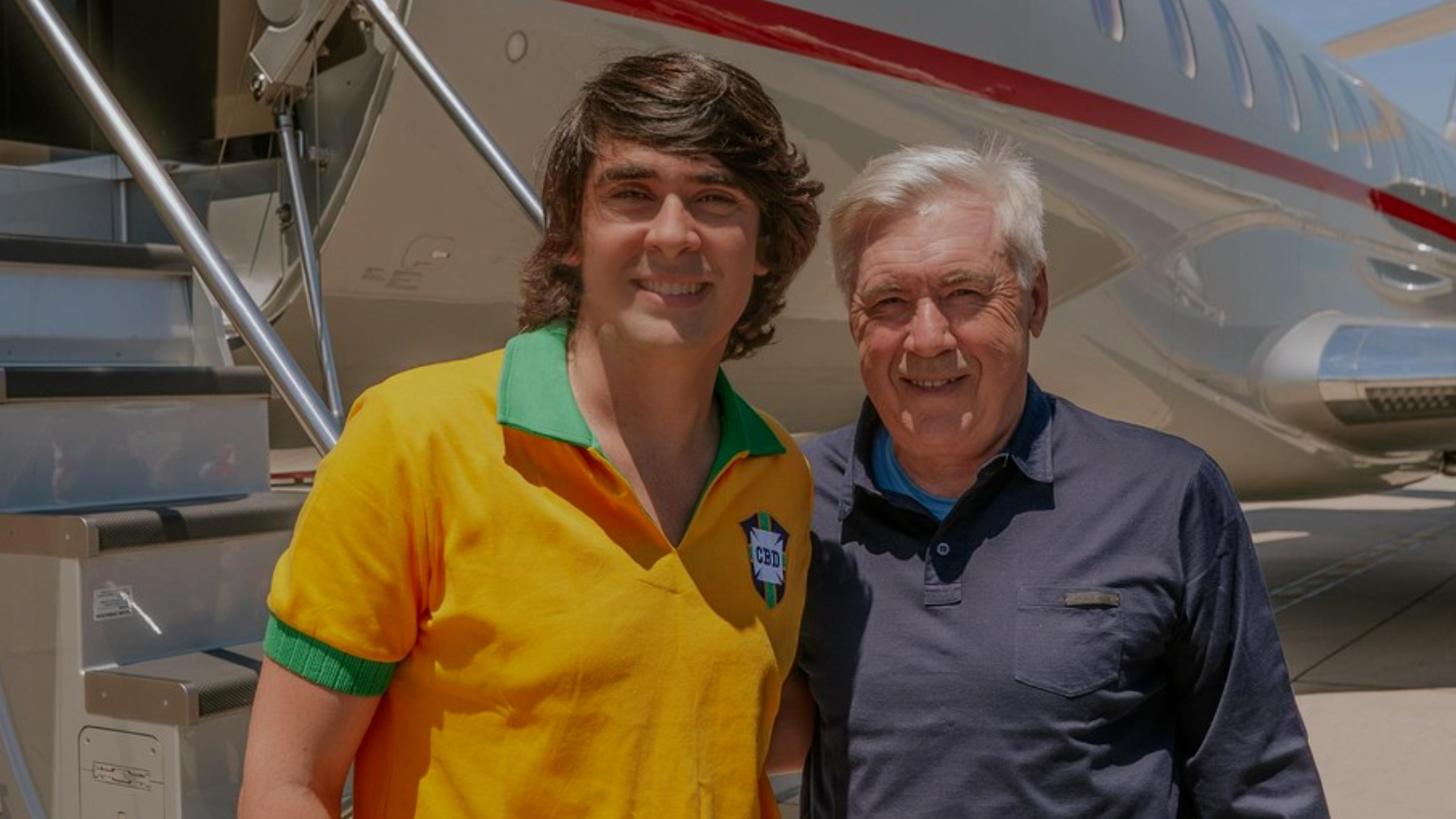 O italiano de 65 anos posou para um foto ao lado do empresário Diego Fernandes, que intermediou o acordo com a CBF, antes de embarcar no voo particular.