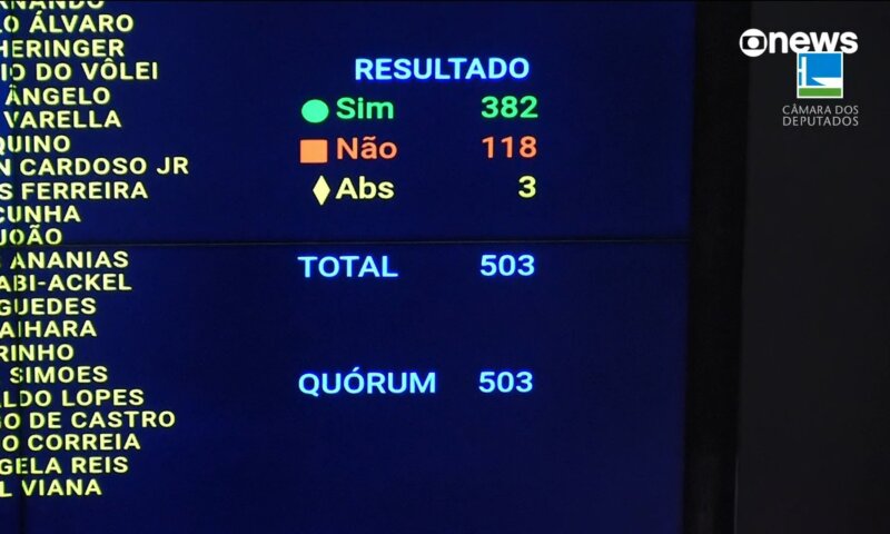Numa votação histórica e após 35 anos de tentativas sem sucesso, a Câmara dos Deputados aprovou em primeiro turno o texto-base da proposta de reforma tributária, com um placar folgado, de 382 votos a favor e 118 contrários. Por se tratar de uma Proposta de Emenda à Constituição (PEC) eram necessários pelo menos 308 votos. A proposta ainda precisa ser votada em segundo turno.