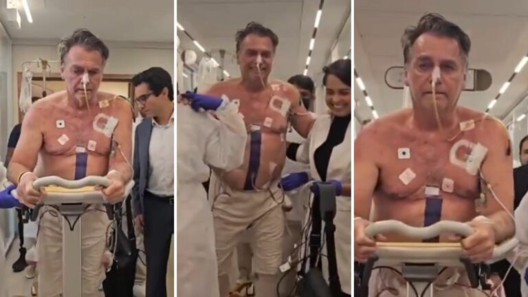 Nas imagens publicadas nas redes sociais, Bolsonaro é auxiliado por enfermeiras e acompanhado de perto por médicos que compõe o staff do local. O ex-mandatário utiliza um andando para ajudá-lo no deslocamento.