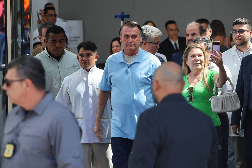O ex-presidente Jair Bolsonaro deixa hospital na manhã deste domingo (4) - Adriano Machado/Reuters