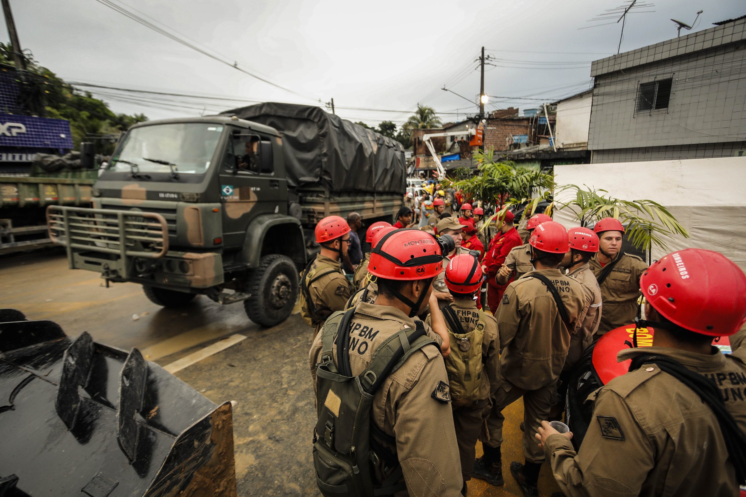 Os bombeiros permanecem trabalhando na comunidade do Areeiro, em Camaragibe, com o auxílio de cães farejadores, para localizar a última pessoa que permanece desaparecida no local. Em Paratibe, militares da Marinha estão auxiliando nas buscas.