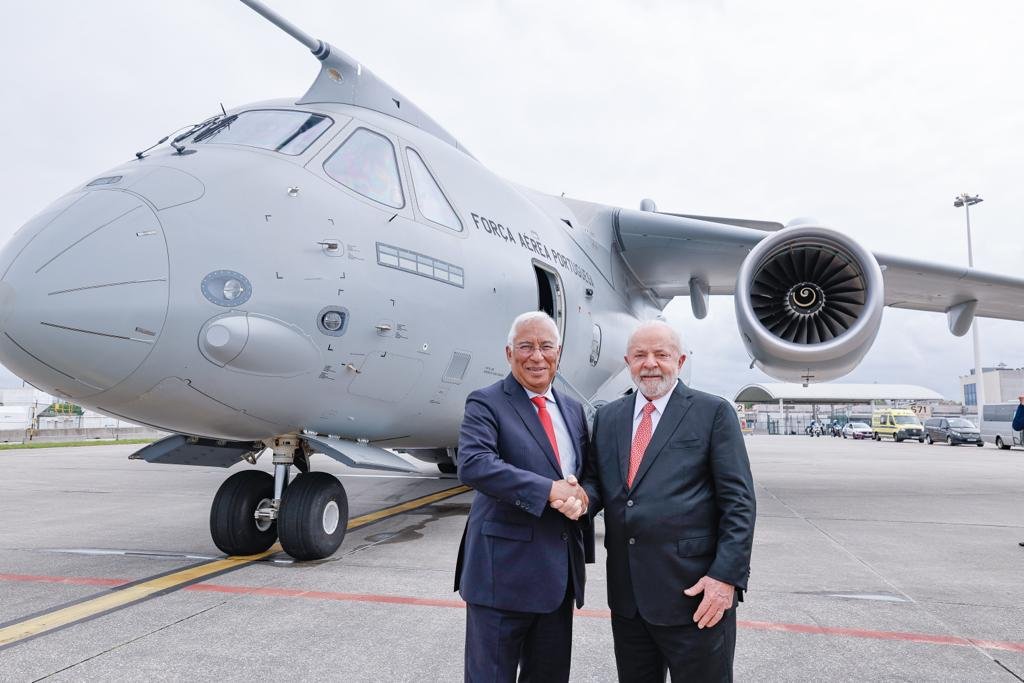 “Voei com o primeiro ministro de Portugal, António Costa,no KC-390, cargueiro da Força Aérea portuguesa, produzido em parceria entre a OGMA e a brasileira Embraer. Exemplo de parceria industrial entre nossos países”, escreveu Lula, em publicação nas redes sociais.