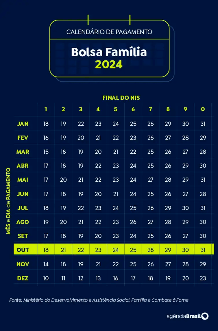 A Caixa Econômica Federal começa a pagar a parcela de outubro do novo Bolsa Família. Recebem nesta sexta-feira (18) os beneficiários com Número de Inscrição Social (NIS) de final 1.![]()