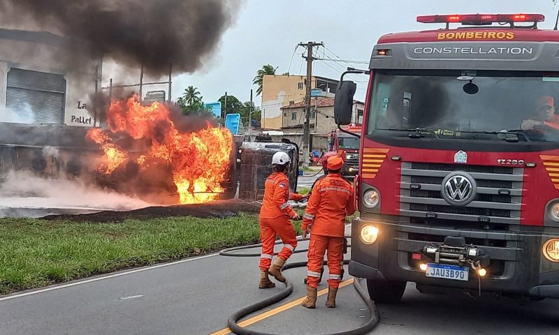Um caminhão-tanque explodiu e espalhou fogo pela BR-101 Norte, em Igarassu, no Grande Recife, na manhã desta quinta (10).