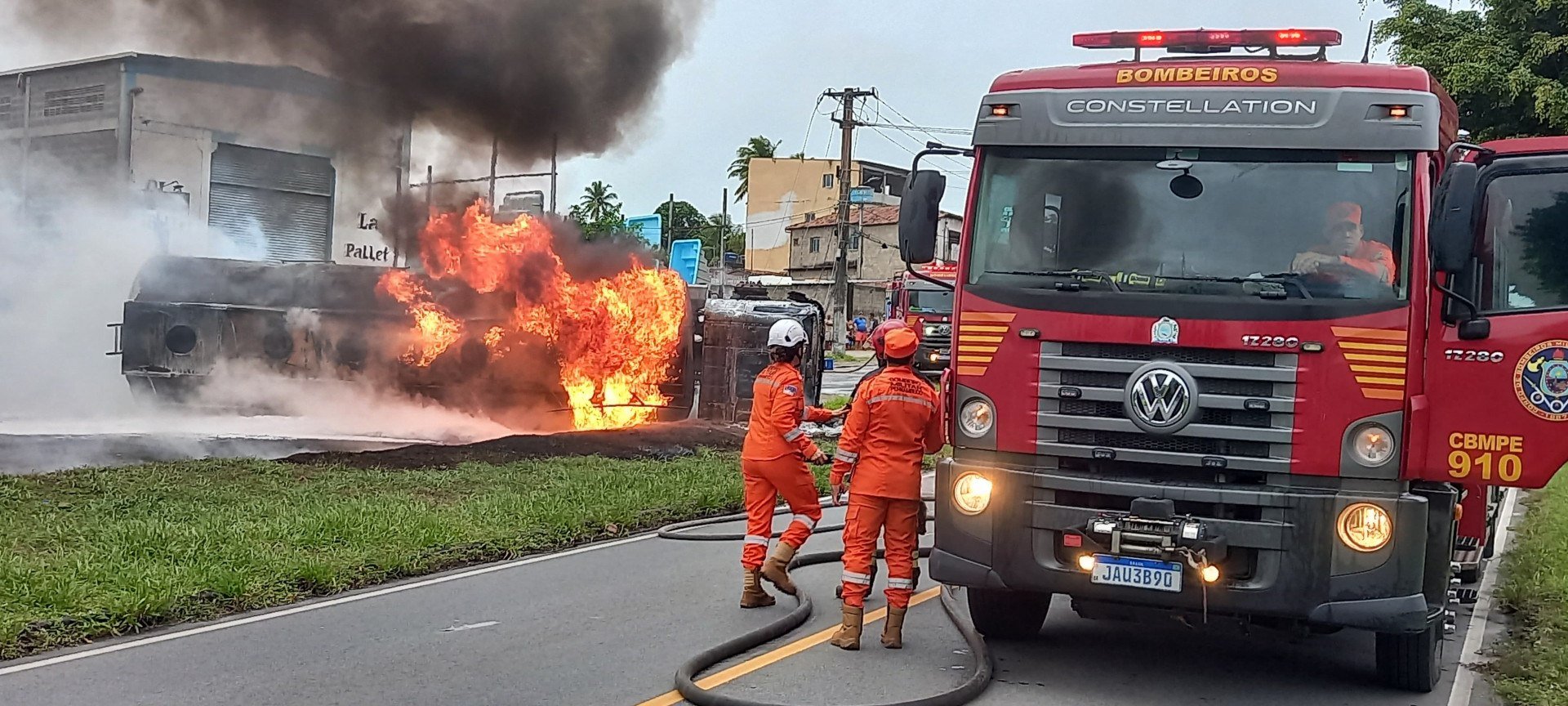 Um caminhão-tanque explodiu e espalhou fogo pela BR-101 Norte, em Igarassu, no Grande Recife, na manhã desta quinta (10).