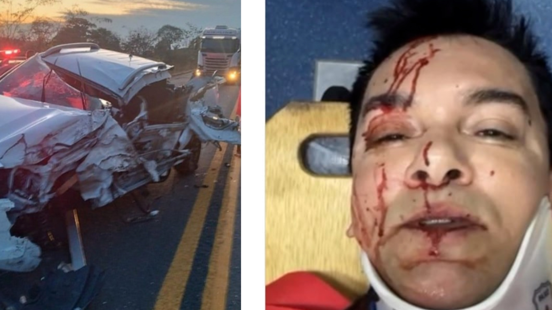 De acordo com a PRF, o carro do cantor invadiu a pista contrária no final de uma curva e bateu de frente com uma carreta.