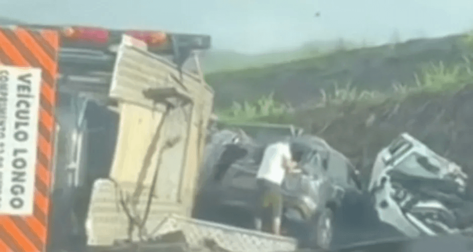 O caminhão-cegonha foi encontrado com uma lateral, do lado do banco do passageiro, junta ao chão. Também foi possível observar, em imagens divulgadas nas redes sociais, que ao menos três carros apresentaram danos e ficaram às margens da pista.
