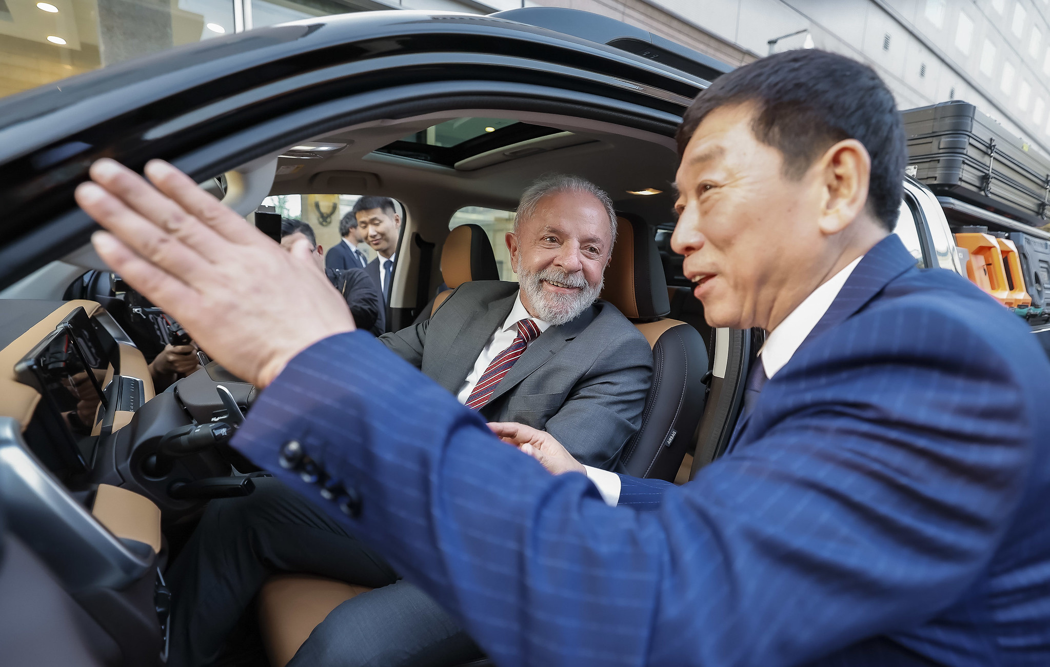 O presidente Lula posa com carros da GWM em Pequim, na China - Ricardo Stuckert/Divulgação PR
