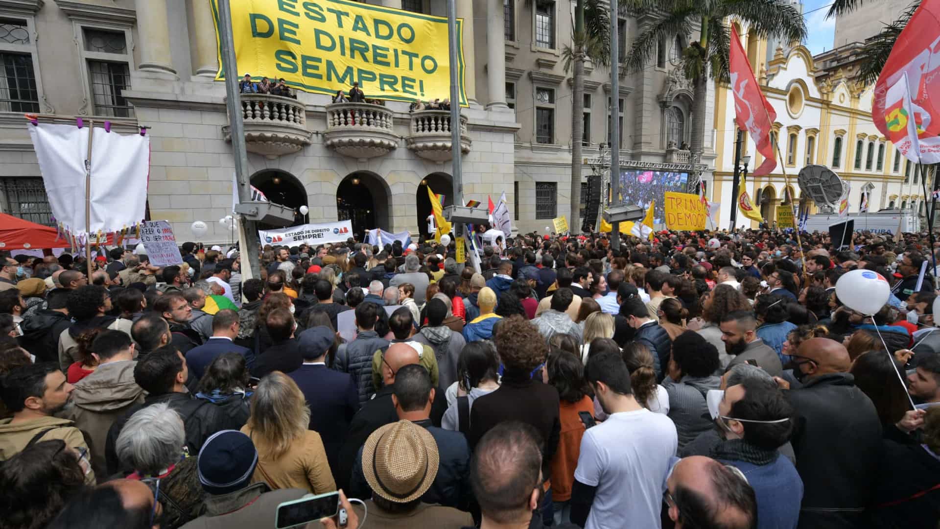 Em agosto de 1977, em meio às comemorações do sesquicentenário de fundação dos Cursos Jurídicos no País, o professor Goffredo da Silva Telles Junior, mestre de todos nós, no território livre do Largo de São Francisco, leu a Carta aos Brasileiros, na qual denunciava a ilegitimidade do então governo militar e o estado de exceção em que vivíamos. Conclamava também o restabelecimento do estado de direito e a convocação de uma Assembleia Nacional Constituinte. A semente plantada rendeu frutos. O Brasil superou a ditadura militar. A Assembleia Nacional Constituinte resgatou a legitimidade de nossas instituições, restabelecendo o estado democrático de direito com a prevalência do respeito aos direitos fundamentais. Temos os poderes da República, o Executivo, o Legislativo e o Judiciário, todos independentes, autônomos e com o compromisso de respeitar e zelar pela observância do pacto maior, a Constituição Federal. Sob o manto da Constituição Federal de 1988, prestes a completar seu 34º aniversário, passamos por eleições livres e periódicas, nas quais o debate político sobre os projetos para o País sempre foi democrático, cabendo a decisão final à soberania popular.A lição de Goffredo está estampada em nossa Constituição “Todo poder emana do povo, que o exerce por meio de seus representantes eleitos ou diretamente, nos termos desta Constituição”. Nossas eleições com o processo eletrônico de apuração têm servido de exemplo no mundo. Tivemos várias alternâncias de poder com respeito aos resultados das urnas e transição republicana de governo. As urnas eletrônicas revelaram-se seguras e confiáveis, assim como a Justiça Eleitoral. Nossa democracia cresceu e amadureceu, mas muito ainda há de ser feito. Vivemos em um País de profundas desigualdades sociais, com carências em serviços públicos essenciais, como saúde, educação, habitação e segurança pública. Temos muito a caminhar no desenvolvimento das nossas potencialidades econômicas de forma sustentável. O Estado apresenta-se ineficiente diante dos seus inúmeros desafios. Pleitos por maior respeito e igualdade de condições em matéria de raça, gênero e orientação sexual ainda estão longe de ser atendidos com a devida plenitude. Nos próximos dias, em meio a estes desafios, teremos o início da campanha eleitoral para a renovação dos mandatos dos legislativos e executivos estaduais e federais. Neste momento, deveríamos ter o ápice da democracia com a disputa entre os vários projetos políticos visando a convencer o eleitorado da melhor proposta para os rumos do país nos próximos anos. Ao invés de uma festa cívica, estamos passando por momento de imenso perigo para a normalidade democrática, risco às instituições da República e insinuações de desacato ao resultado das eleições. Ataques infundados e desacompanhados de provas questionam a lisura do processo eleitoral e o estado democrático de direito tão duramente conquistado pela sociedade brasileira. São intoleráveis as ameaças aos demais poderes e setores da sociedade civil e a incitação à violência e à ruptura da ordem constitucional. Assistimos recentemente a desvarios autoritários que puseram em risco a secular democracia norte-americana. Lá as tentativas de desestabilizar a democracia e a confiança do povo na lisura das eleições não tiveram êxito. Aqui, também não terão. Nossa consciência cívica é muito maior do que imaginam os adversários da democracia. Sabemos deixar de lado divergências menores em prol de algo muito maior, a defesa da ordem democrática. Imbuídos do espírito cívico que lastreou a Carta aos Brasileiros de 1977 e reunidos no mesmo território livre do Largo de São Francisco, independentemente da preferência eleitoral ou partidária de cada um, clamamos as brasileiras e brasileiros a ficarem alertas na defesa da democracia e do respeito ao resultado das eleições. No Brasil atual não há mais espaço para retrocessos autoritários. Ditadura e tortura pertencem ao passado. A solução dos imensos desafios da sociedade brasileira passa necessariamente pelo respeito ao resultado das eleições. Em vigília cívica contra as tentativas de rupturas, bradamos de forma uníssona: Estado Democrático de Direito Sempre!