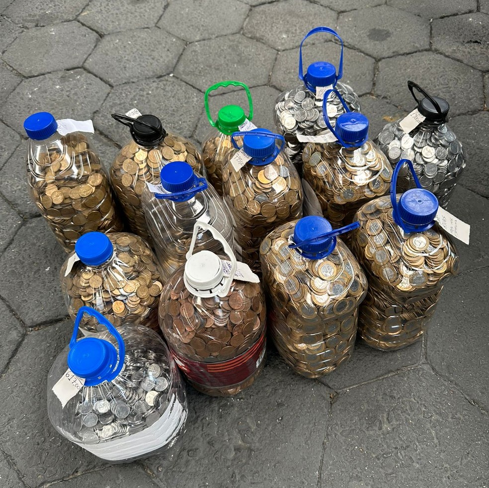 Moedas estavam dentro de galões de água — Foto: Arquivo pessoal