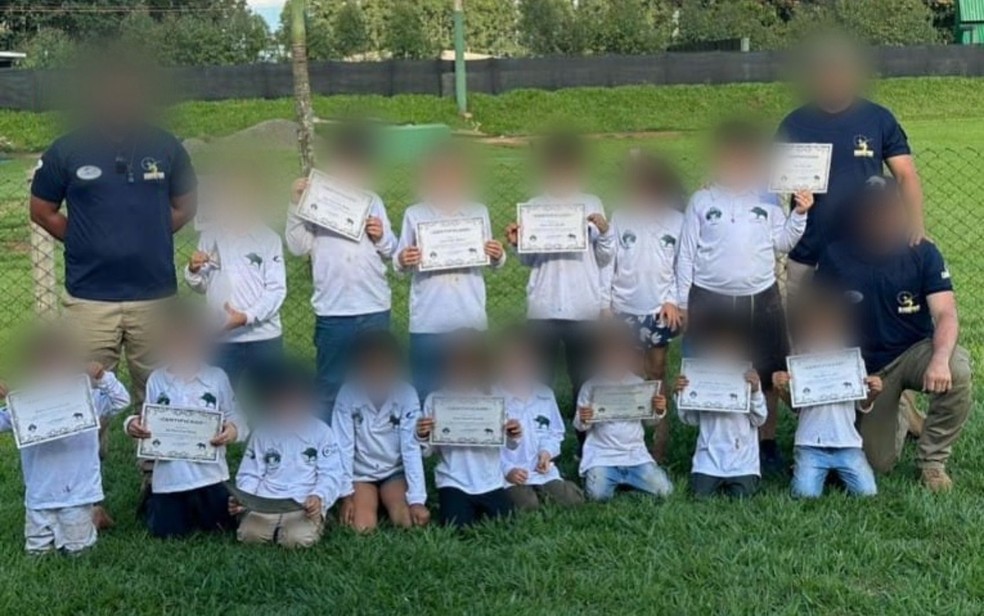 Crianças aparecem em fotos empunhando armas de pressão durante curso de atirador mirim no Clube de Caça e Tiro Hunter, em Jataí — Foto: Reprodução/Hunter Jataí