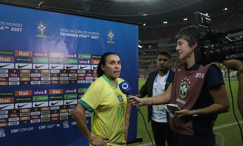 A seleção brasileira feminina venceu a Jamaica por 4 x 0 na partida amistosa desse domingo (1). O jogo aconteceu às 17h, na Arena Pernambuco, em Recife (PE), como preparatório para as Olimpíadas de Paris 2024. O primeiro gol foi marcado pela lateral Adriana, aos 25 minutos do 1º tempo. Logo depois, a atacante Marta marcou outros dois gols, aos 18 e aos 44 minutos do 2º tempo.