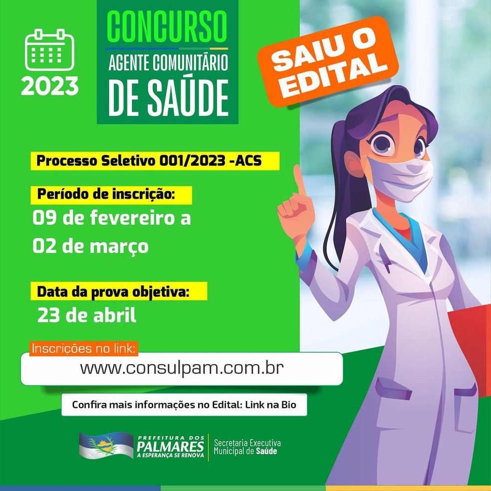 Processo seletivo para 30 vagas de agente de saúde em Palmares