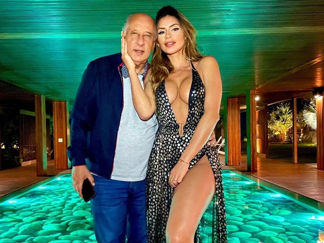 A apresentadora do programa Miados&Latidos, Clara Brasil, de 32 anos, noiva do ex-presidente da CBF Marco Polo Del Nero, de 84 anos, compartilhou um momento de lazer, no sábado (20), em sua mansão.