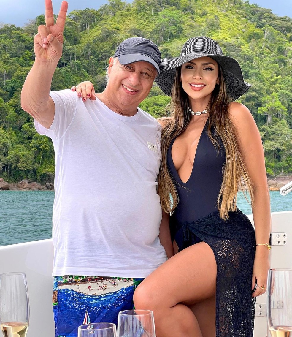 A apresentadora do programa Miados&Latidos, Clara Brasil, de 32 anos, noiva do ex-presidente da CBF Marco Polo Del Nero, de 84 anos, compartilhou um momento de lazer, no sábado (20), em sua mansão.