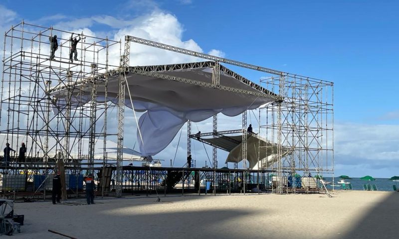 A estrutura do Réveillon 2023 do município do Jaboatão dos Guararapes já está sendo montada para que, no sábado (31), esteja pronta para receber as cerca de 300 mil pessoas aguardadas na orla de Candeias. Neste ano, o palco está posicionado próximo ao Sesc, virado para Barra de Jangada, para ampliar a faixa de areia e permitir que todo o público possa assistir aos shows de Nattan, Priscila Senna, Raphaela Santos, Allan Carlos, Marcelo Pernambucano e Orquestra 90º. As apresentações começam às 19h do sábado e vão até às 4h do domingo (1). À meia-noite, haverá show pirotécnico com duração de 12 minutos, na orla, e de 10 minutos em Jaboatão Centro.