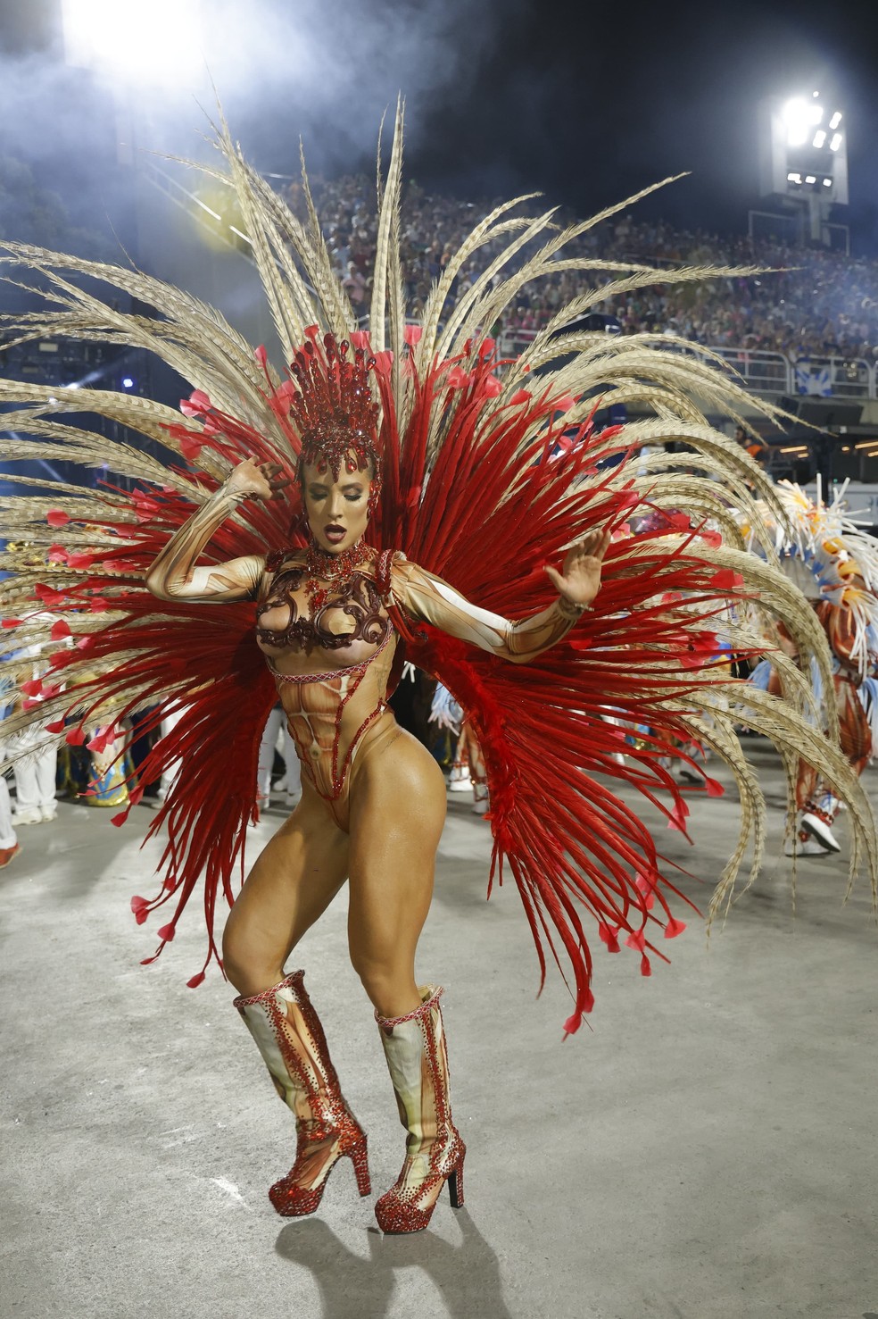 Gabi Martins desfilou vestida de barro, a matéria-prima, logo à frente do quarto carro alegórico da escola, a terceira a passar pela avenida neste segundo dia de desfiles do Grupo Especial do Rio de Janeiro.