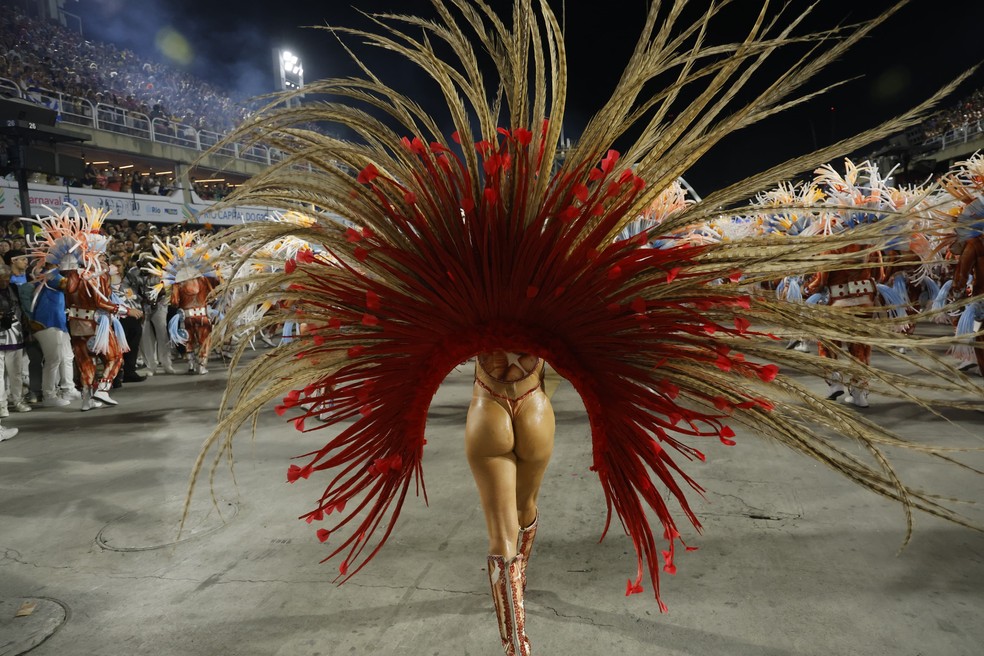 Gabi Martins desfilou vestida de barro, a matéria-prima, logo à frente do quarto carro alegórico da escola, a terceira a passar pela avenida neste segundo dia de desfiles do Grupo Especial do Rio de Janeiro.