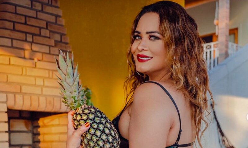 A influenciadora do mundo adulto surgiu com uma lingerie com transparência bem ousada, quase mostrando demais e foi muito elogiada.