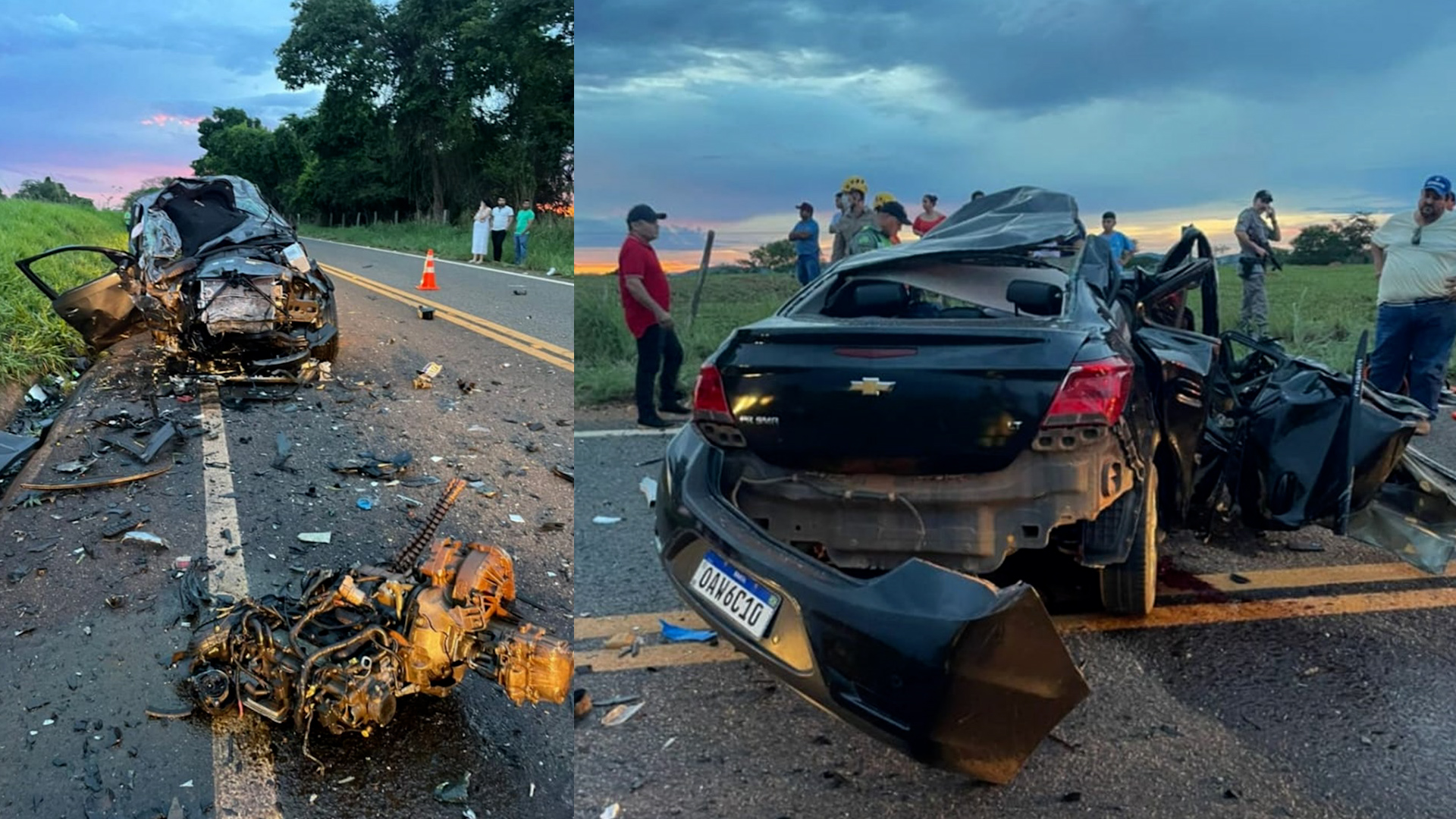 “No veículo de passeio havia quatro ocupantes, todos com politraumatismos incompatíveis com a vida, com os óbitos já confirmados ainda no local pelo médico do Serviço de Atendimento Móvel de Urgência. Na caminhonete, duas vítimas foram socorridas pelo Samu e encaminhadas para atendimento hospitalar, sendo posteriormente confirmado um óbito na unidade de saúde. O condutor permaneceu sob cuidados médicos”, disse a corporação.