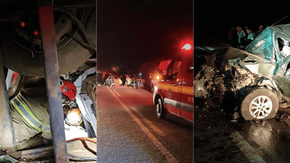 Um grave acidente envolvendo dois carros e uma moto deixou oito pessoas mortas na noite desse domingo (3/8), na BR-146, em Guaxupé, no Sul de Minas. Uma criança de 12 anos sobreviveu ao acidente e foi socorrida ao hospital. Outras duas pessoas que auxiliavam no socorro às vítimas foram atropeladas por uma van que não conseguiu parar e também ficaram feridas.