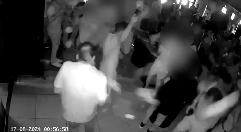 Em seguida, ele vai até a pista de dança e dispara tiros para o alto e em direção ao palco. Assustados, alguns clientes correram e outros deitaram no chão
