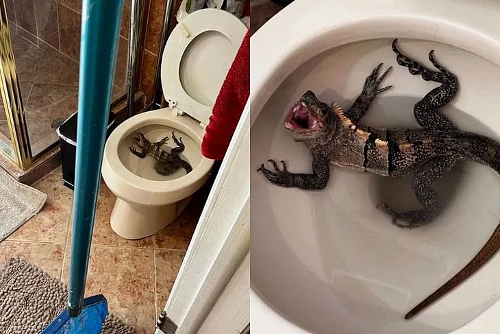 Homem é surpreendido por iguana dentro de vaso sanitário