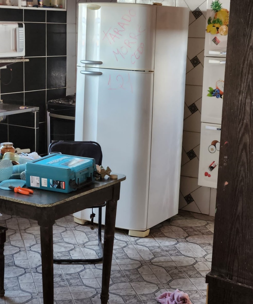 Os agentes afirmam, ainda, que o número 121 escrito na geladeira se refere ao artigo do Código Penal referente a homicídio.