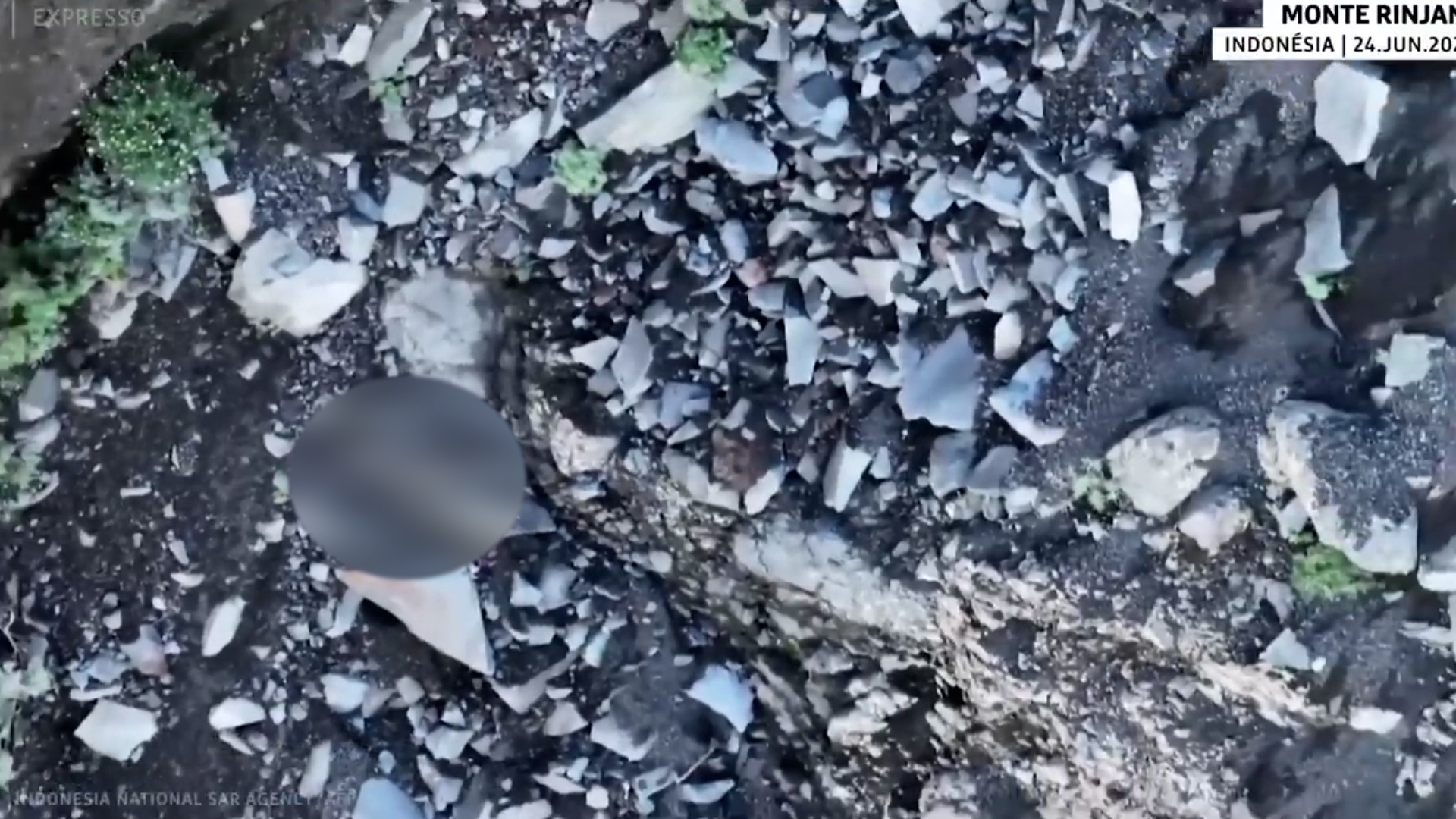 Imagens captadas por drones na terça-feira (24) mostram o local onde estava o corpo de Juliana Marins, 26, turista brasileira que caiu de penhasco durante trilha para vulcão no Monte Rinjani, na Indonésia.