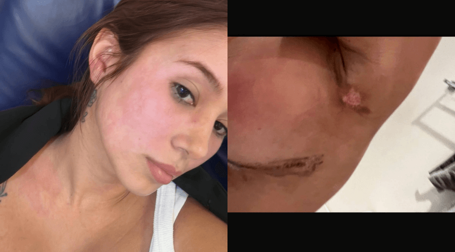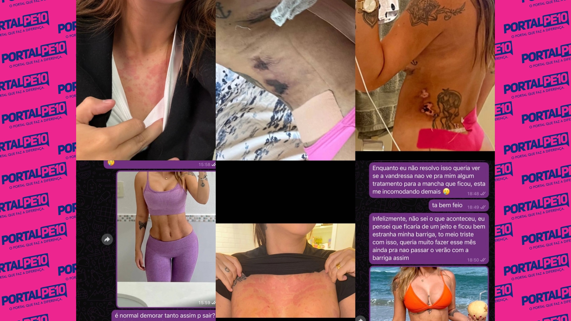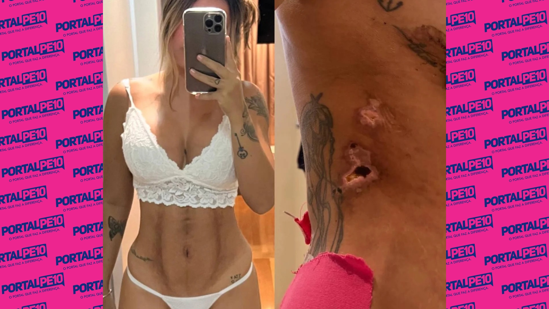 A influenciadora afirma ter ficado com o “corpo deformado e torto”, além de relatar episódios de necrose, queimaduras na região abdominal, falta de assistência adequada e impactos no estado emocional.