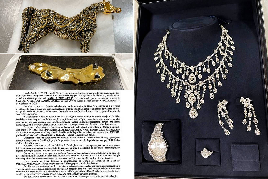 A informação foi revelada pelo jornal O Estado de S. Paulo nesta sexta-feira (3), e a ação foi confirmada pelo ministro Paulo Pimenta, da Secretaria Especial de Comunicação Social do governo Lula (PT), que publicou em rede social fotos dos artigos de luxo apreendidos e de um documento que relata o ocorrido na alfândega do aeroporto de Guarulhos (SP).