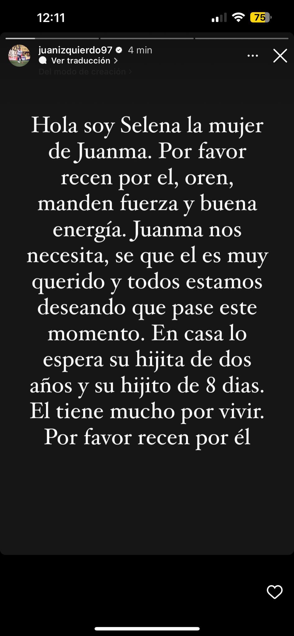 Durante o período em que o jogador ficou internado, sua esposa chegou a publicar pedidos de orações nos stories do Instagram com fotos do jogador e dos filhos. “Estamos te esperando, rezem por nossa família”, disse.
