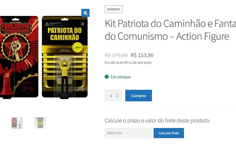 O boneco Patriota do Caminhão é vendido avulso, mas também tem a opção em kit, em pacote com o Fantasma do Comunismo. Ao fazer a escolha pelos dois, o consumidor recebe um desconto e a compra sai por R$ 153,90 sem o frete.