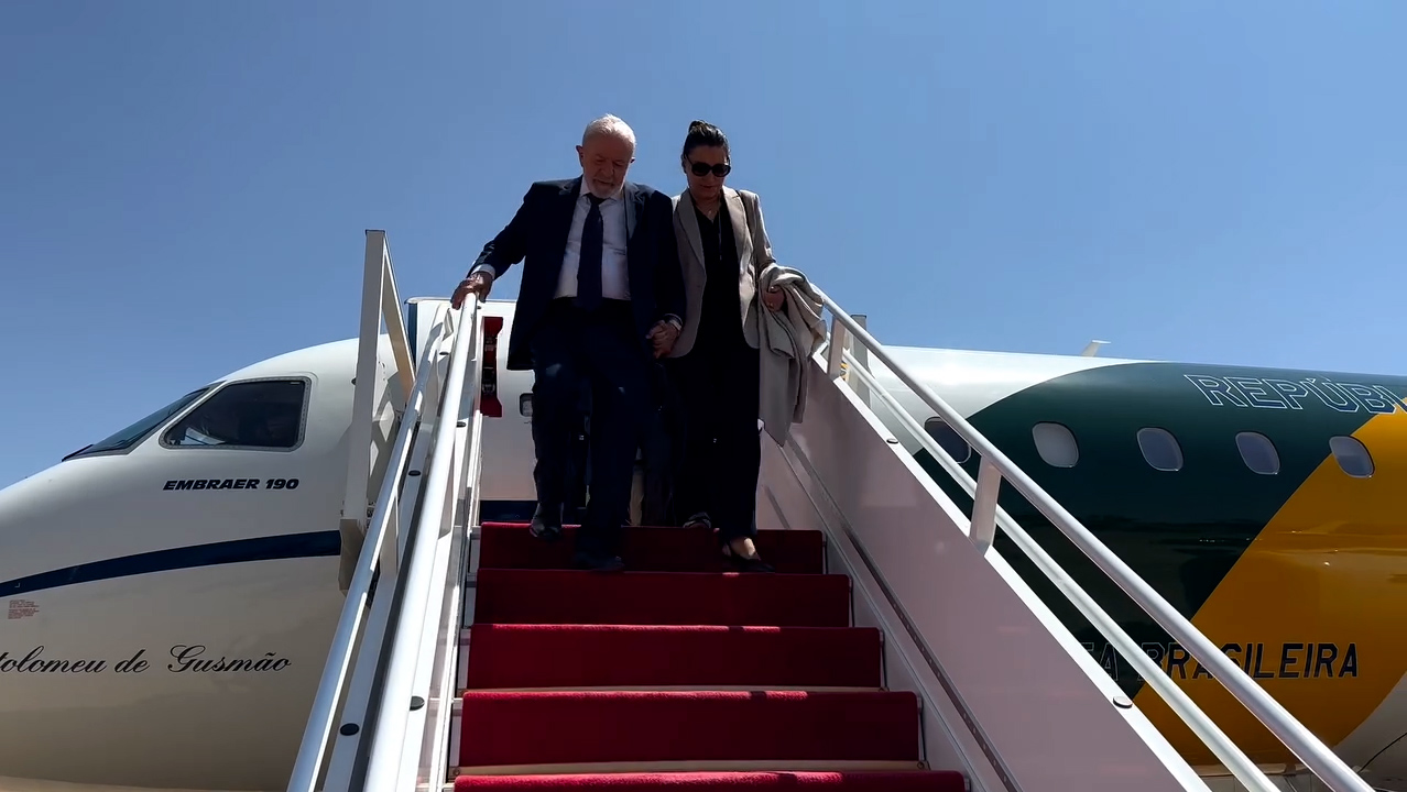 Lula e a primeira-dama Janja desembarcam do avião presidencial