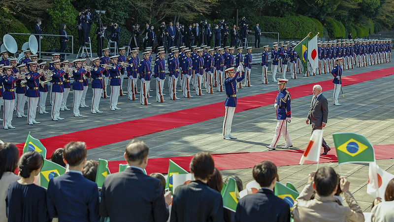 Após a recepção no Palácio Imperial, Lula cumprimentou os anfitriões ao som de músicas brasileiras interpretadas por uma banda militar e seguiu para um encontro reservado com o imperador.
