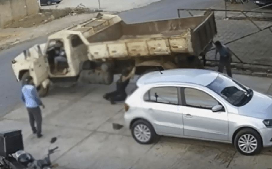 No entanto, o veículo não estava com a marcha neutra e, quando o homem deu partida, o caminhão arrancou e atropelou a vítima. Câmeras de segurança registraram o momento em que os funcionários da empresa correm e gritam desesperados.