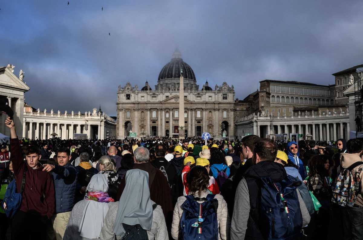 Com o nascer do sol, a multidão tomou conta da Praça de São Pedro. Detectores de metal foram alocados nas principais vias de acesso. A polícia revistava mochilas e pedia que cada pessoa bebesse água de sua garrafa por medida de segurança.