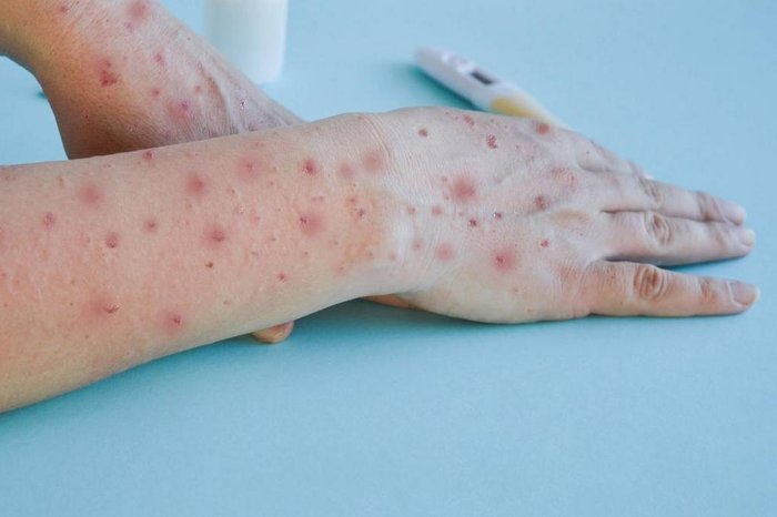 A mpox provoca erupções cutâneas (lesões de pele) e adenomegalia (linfonodos inchados) como sintomas mais comuns. Outros sinais também podem indicar a contração da doença: febre; dores no corpo; dor de cabeça; calafrios; e fraqueza.