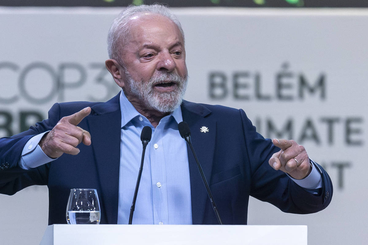 O presidente Lula durante seu discurso na Cúpula de Líderes, em Belém - Danilo Verpa/Folhapress