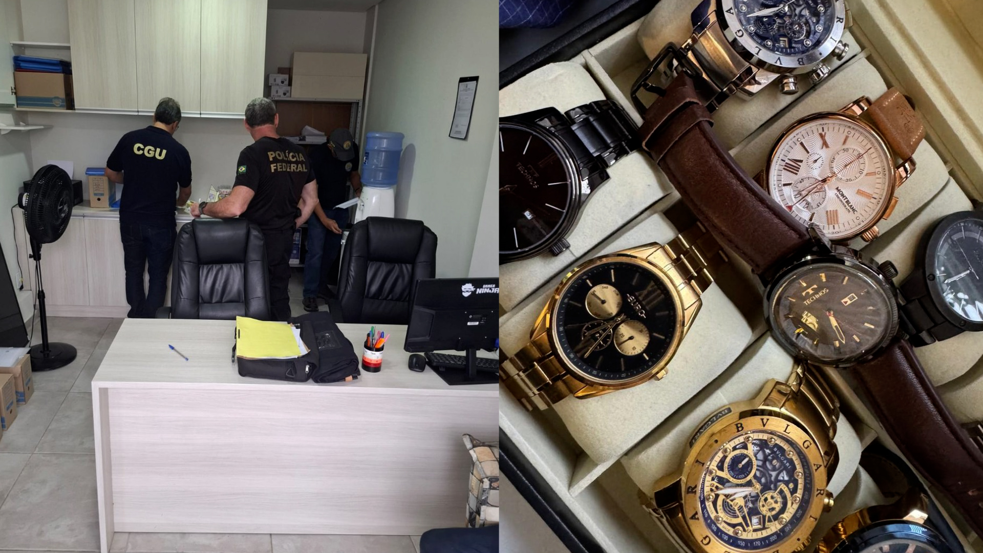 Oitenta policiais federais e oito servidores do quadro técnico da CGU cumprem 16 mandados de busca e apreensão em Garanhuns, Caruaru, Terezinha e Bom Conselho, no Agreste. Todos os mandados foram expedidos pela 23ª Vara da Justiça Federal de Pernambuco. A JFPE determinou também a proibição dos investigados manterem contato entre si e se ausentarem da Comarca que residem sem autorização judicial. Imagens divulgadas pela PF mostram os policiais em ação e uma caixa com relógios que foram apreendidos. Crimes Os crimes investigados são de fraude de licitação, peculato, organização criminosa e lavagem de dinheiro.