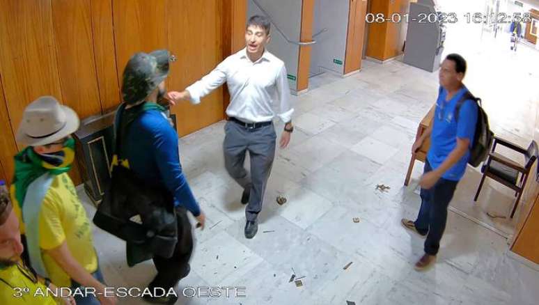 Oficial do GSI conversa com golpistas no terceiro andar do Planalto em 8 de janeiro