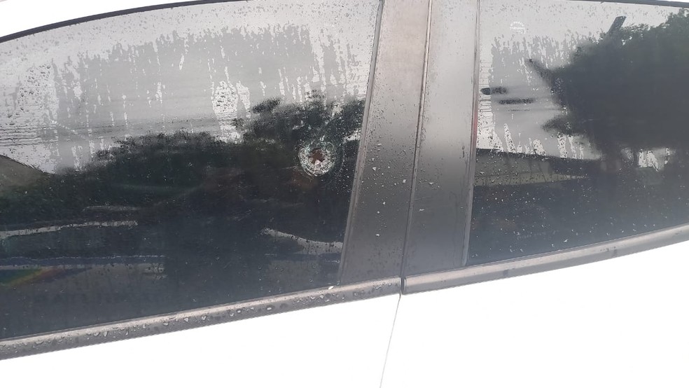 Marca de bala no vidro de um carro em que um homem foi encontrado morto no Alto do Mandú, no Recife. — Foto: Reprodução/WhatsApp