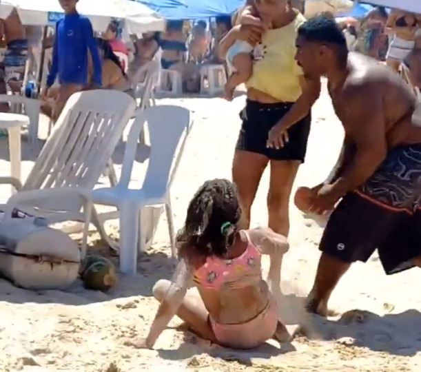 No vídeo, o homem aparece dando chineladas nas crianças e chega a ponto de erguer uma delas pelo pescoço a uma altura maior que a dele e arremessá-la contra o chão. Toda a violência se desenrolou em público, sem que o pai demonstrasse incômodo com a presença de outros banhistas. Nenhum dos presentes chegou a intervir.
