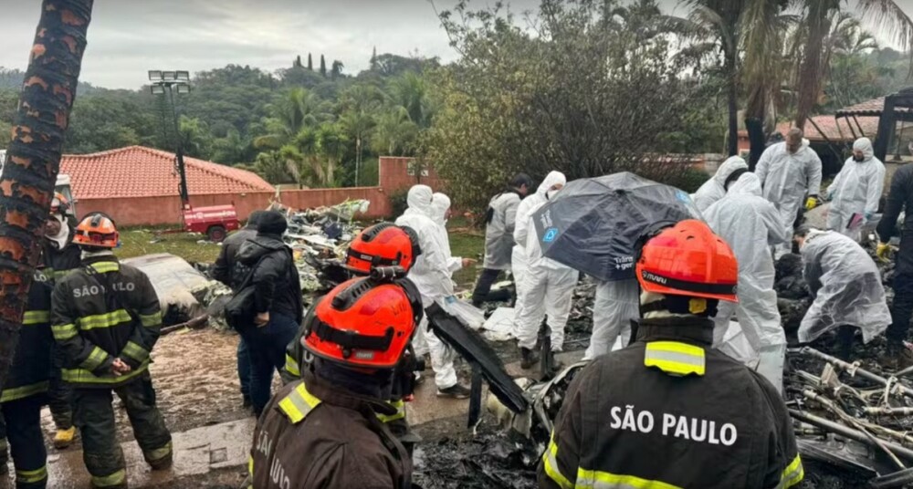 A Polícia Federal (PF) divulgou neste sábado (10), fotos do trabalho da perícia em Vinhedo, no interior de São Paulo, onde um avião caiu na tarde dessa sexta-feira (9), deixando 62 pessoas mortas. Das 58 pessoas abordo, 4 tinham dupla cidadania, sendo 3 venezuelanos e 1 portuguesa. A informação foi confirmada pela Voepass, companhia aérea responsável pelo voo.