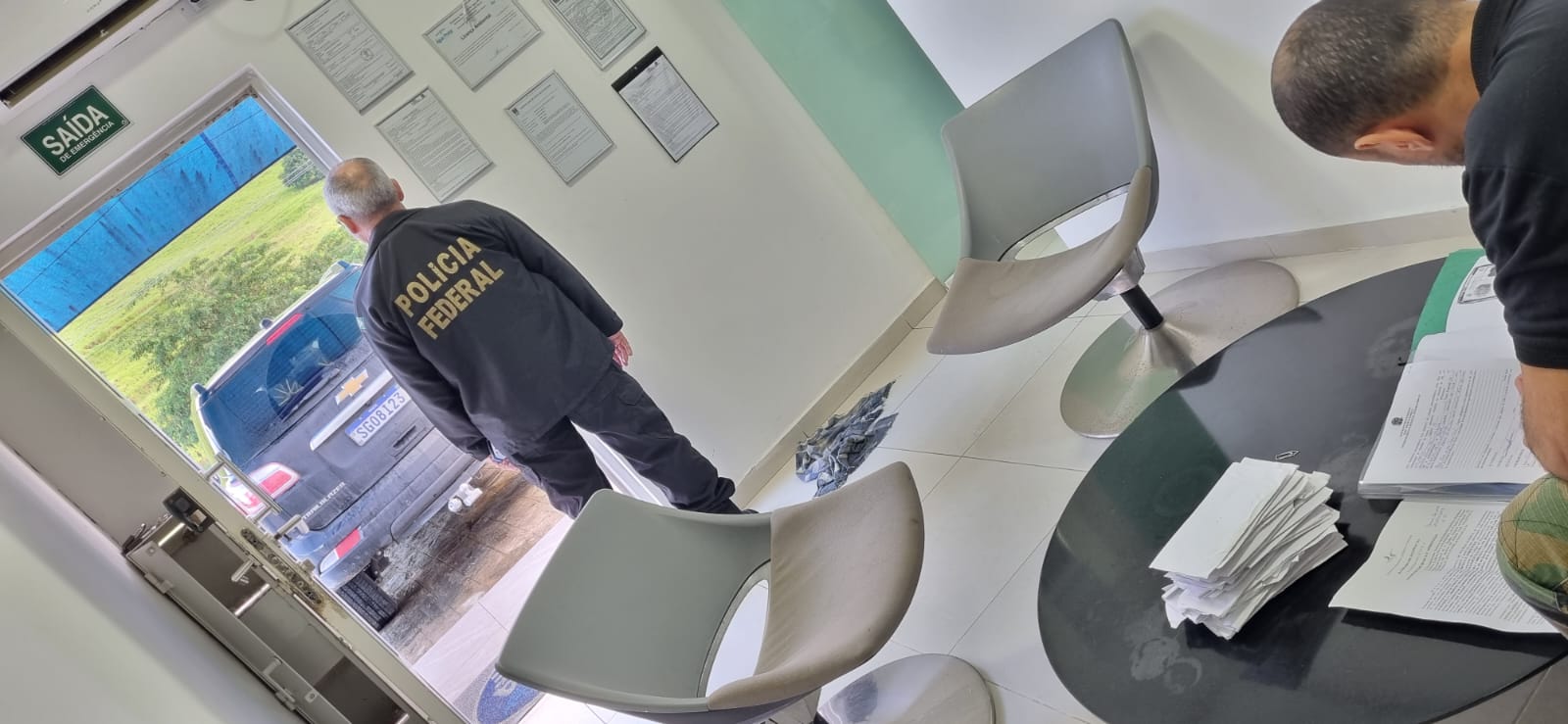 Policiais federais em frente a Prefeitura de Cachoeira Grande durante operação Deterrimus — Foto: Divulgação/PF