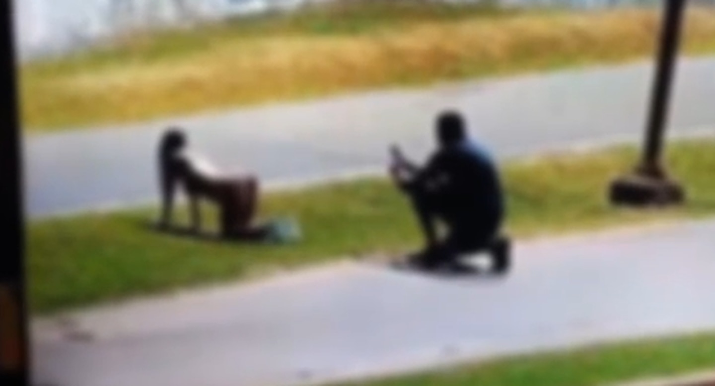 Durante as fotos, a mulher fez várias poses com referências sexuais, senta no capô de um carro, e circula livremente pela pista usada para fazer caminhada. Durante quase três minutos o casal permaneceu fazendo as imagens, sem demonstrar preocupação se era observado.