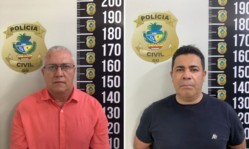 Gilberto Rodrigues (lado esquerdo) e Girlandio Pereira (lado direito) presos suspeitos de de se passarem por diretores de bancos para aplicar golpes, em Goiás — Foto: Divulgação/Polícia Civil