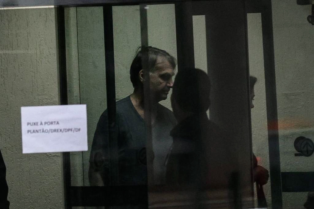 Bolsonaro acompanha Michelle Bolsonaro até a porta da PF - Gabriela Biló/Folhapress